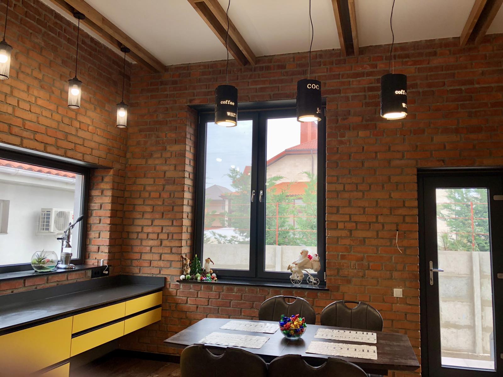 1-й поверх: кухня-їдальня, хол, кабінет, санвузол, вбиральня.