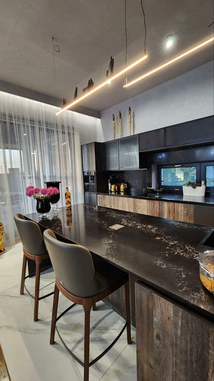 • Зручна кухня з острівною робочою частиною, технікою Dr.Dietrich та плитою Flames (Італія)