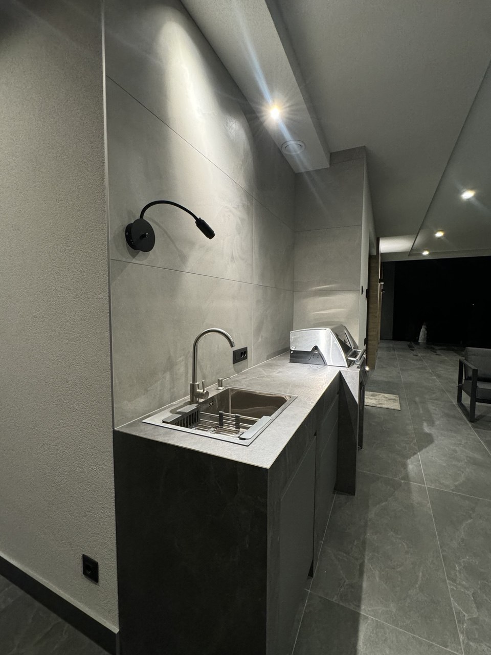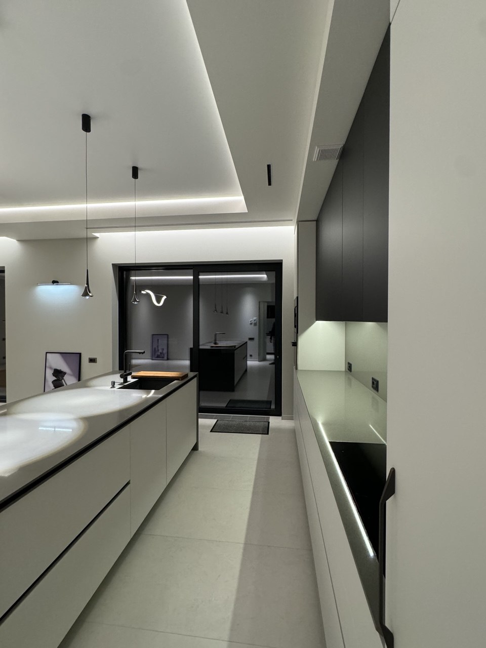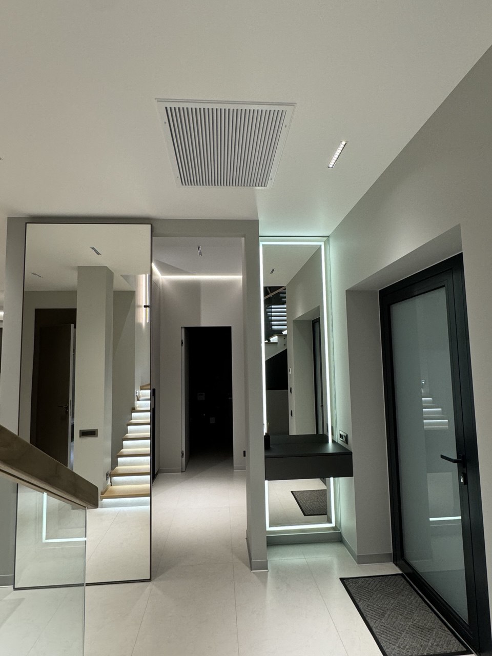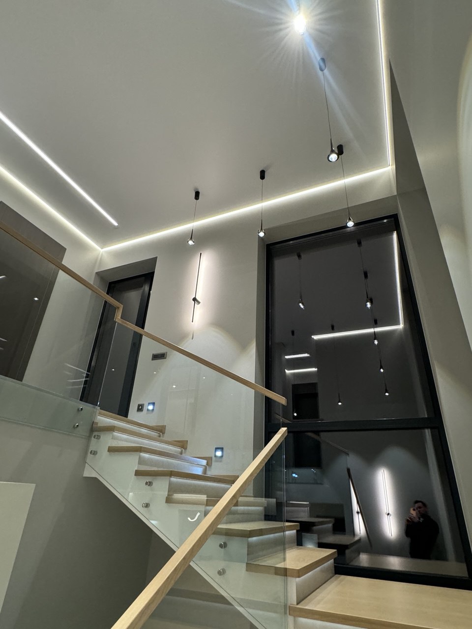 Будинок вирізняється великою кількістю терас, панорамним склінням, архітектурною підсвіткою, високими стелями та відчуттям простору.