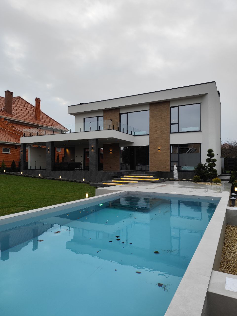 Загальна площа — 245,8 м², ділянка 10 соток із продуманим ландшафтом, басейном та зонами відпочинку.