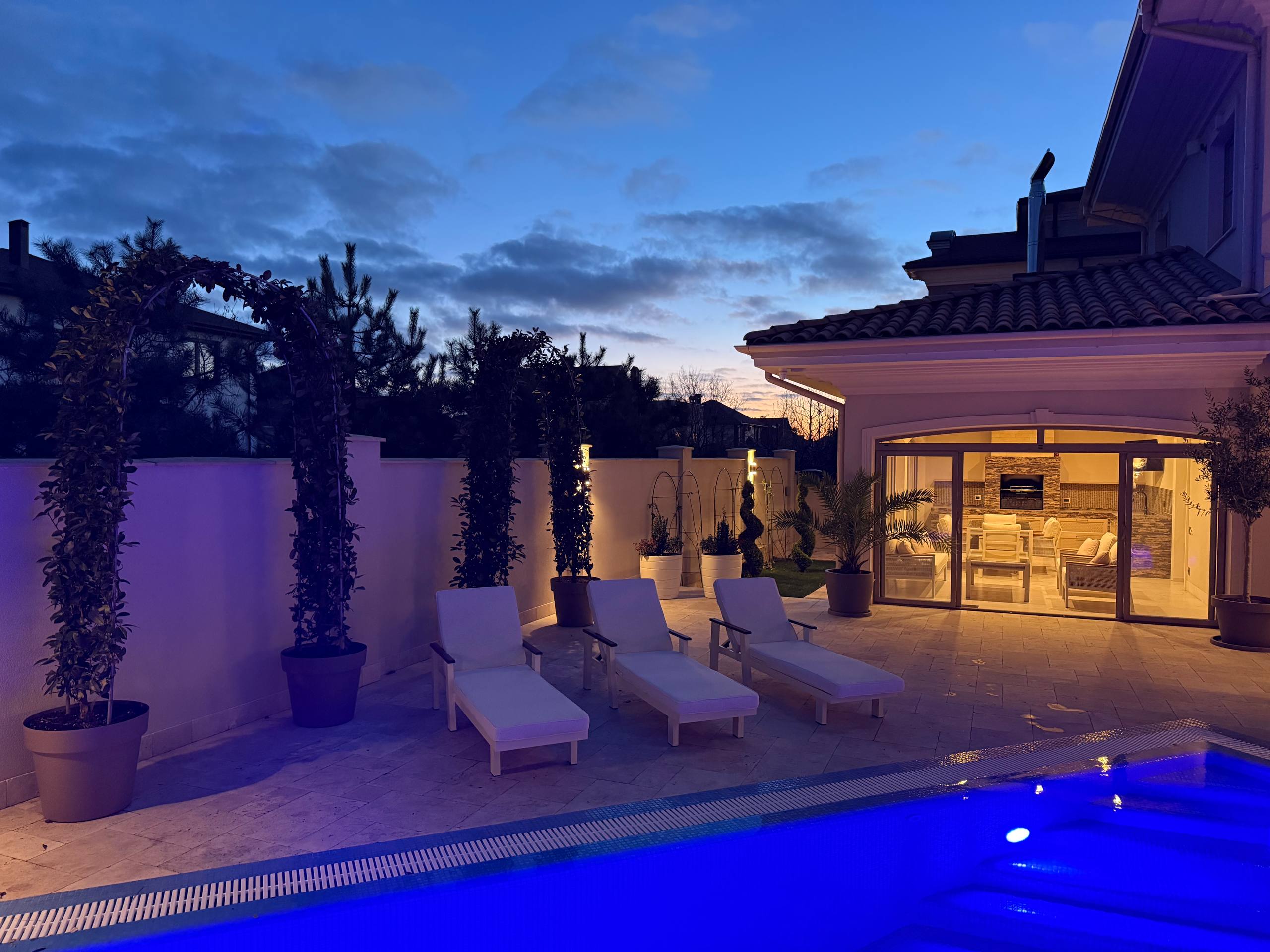 Бассейн с переливом и подогревом 8х4 глубина от 1,6 до 2,10 Смарт газовый котел