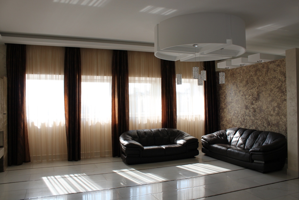 У будинку на першому поверсі розташована кухня-студія та вітальня. Розкішні меблі підкреслюють статусність будинку та його гостей. Так само на 1-му поверсі є гостьовий санвузол. На другий поверх ведуть дуже гарні сходи.